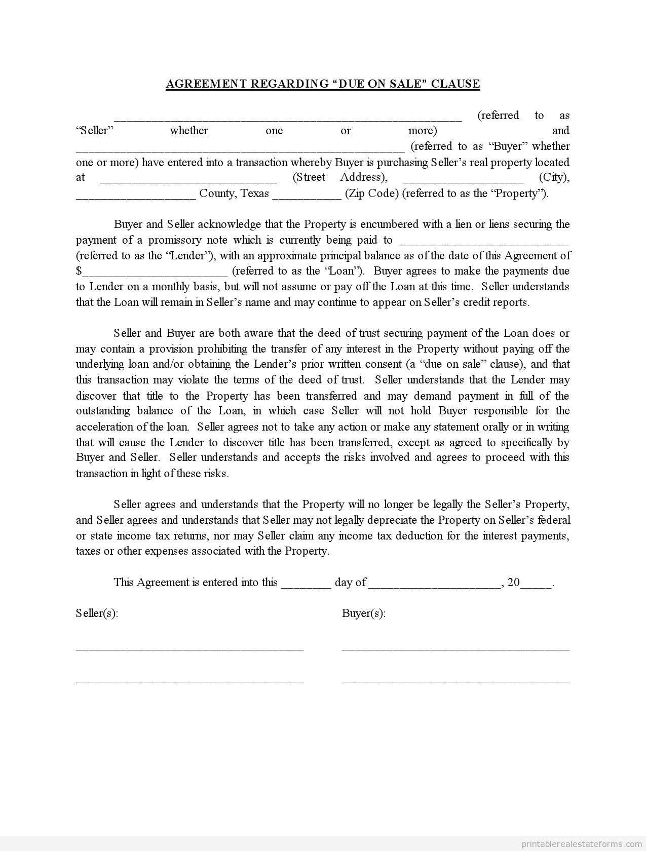 AGREEMENT REGARDING “DUE ON SALE” CLAUSE