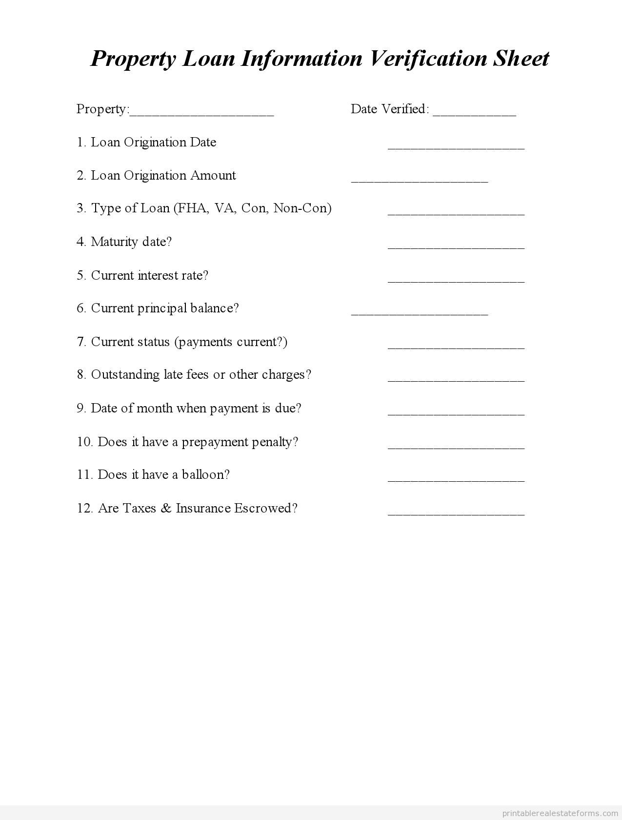 Property Loan Information Verification Sheet