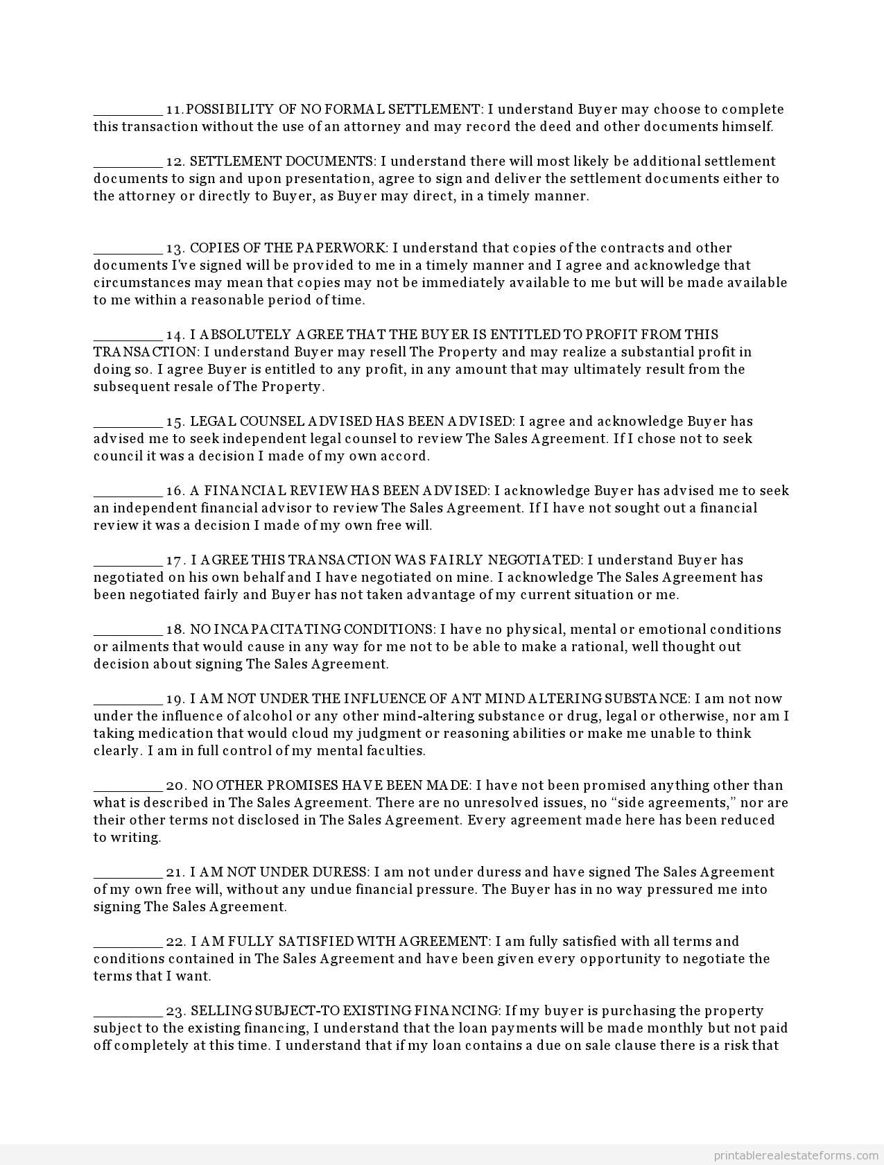 ________ 11.POSSIBILITY OF NO FORMAL SETTLEMENT: I understand Buyer may choose to complete this transaction without the use of an attorney and may record the deed and other documents himself.