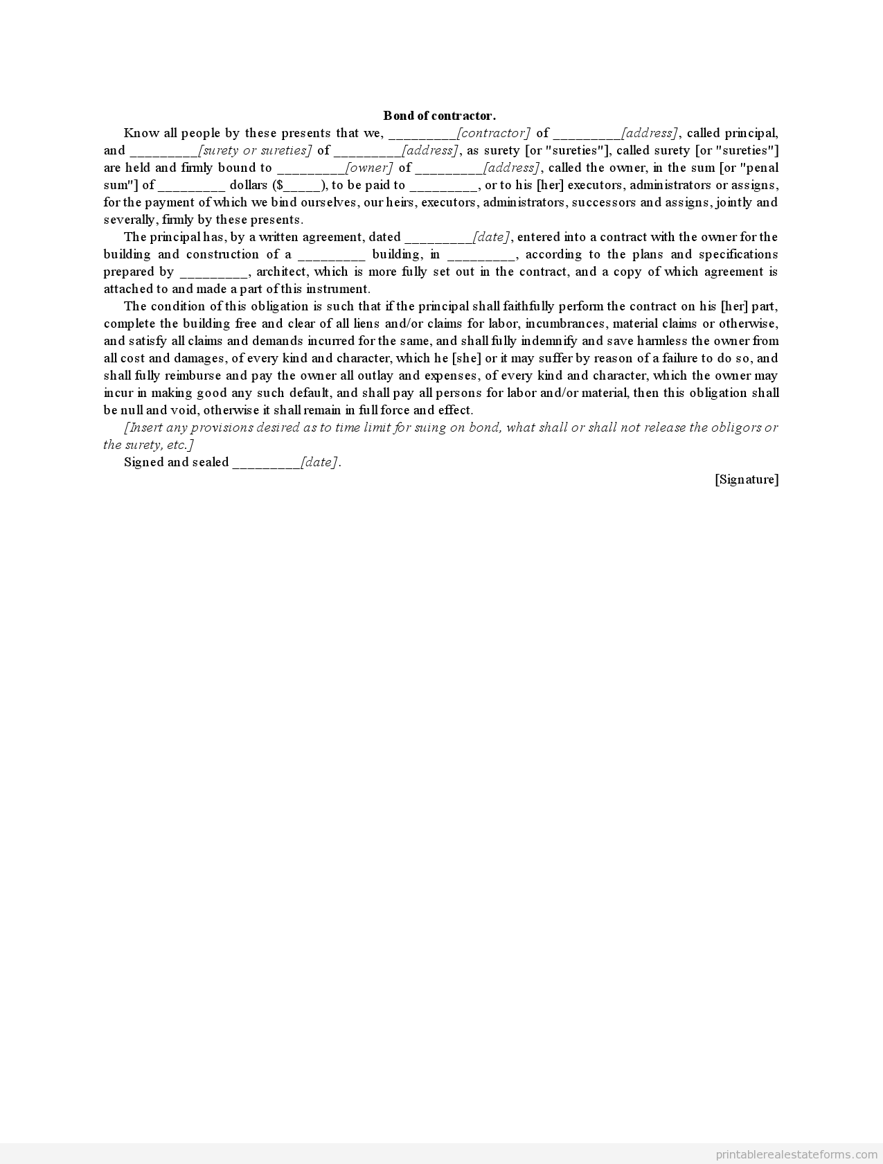 The Bond of Contractor are usually entered into when public projects are to be performed. Though some private projects too may require the same. This ensures that the job is completed properly. The reason why Bond Of Contractor is needed is either it is needed by the owner or the contractor who has hired you as the subcontractor.