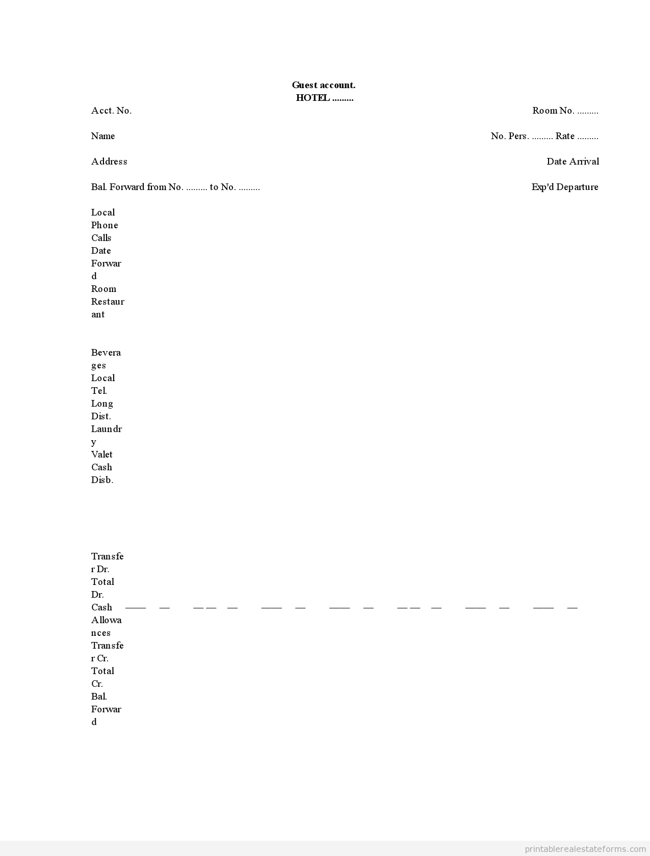 Online printable forms of Guest account in hotels are hence very significant. The overall credit transfer and balance are mentioned for the better understanding of the payer. It is known to give out a clear account detail leading to a better and convenient hotel staying experience of the guest.