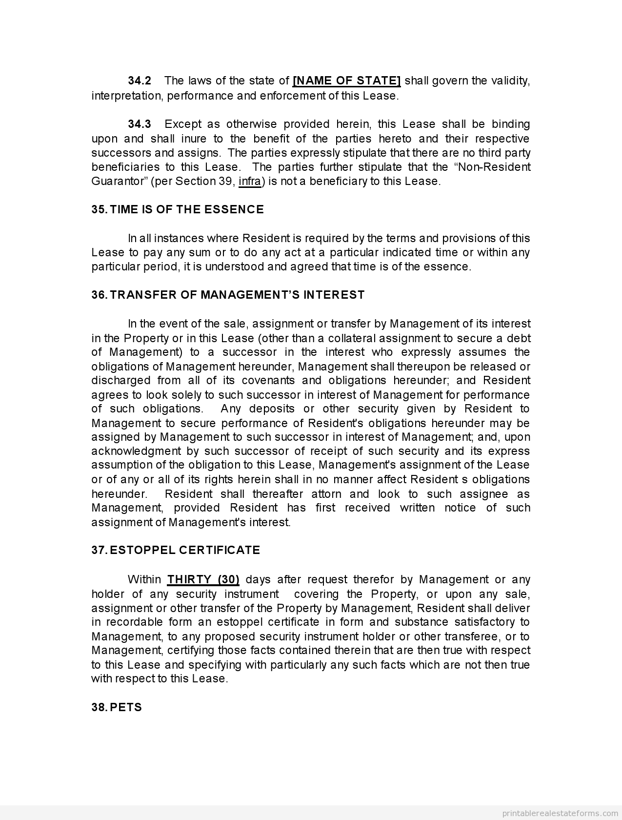 34.2 The laws of the state of [NAME OF STATE] shall govern the validity, interpretation, performance and enforcement of this Lease.