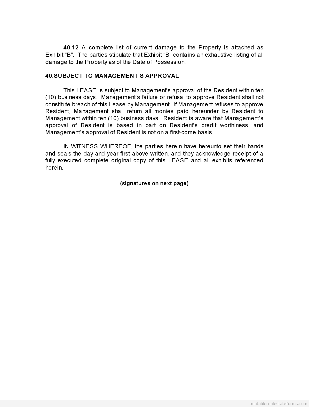 This LEASE is subject to Management’s approval of the Resident within ten (10) business days. Management’s failure or refusal to approve Resident shall not constitute breach of this Lease by Management. If Management refuses to approve Resident, Management shall return all monies paid hereunder by Resident to Management within ten (10) business days. Resident is aware that Management’s approval of Resident is based in part on Resident’s credit worthiness, and Management’s approval of Resident is not on a first-come basis.