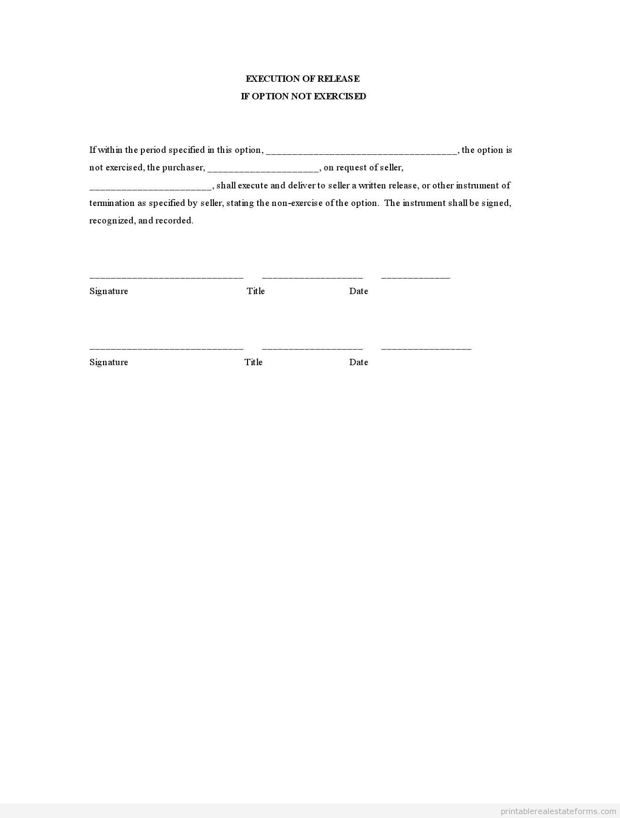 Where to download Execution of Release – If Option Not Exercised Template?