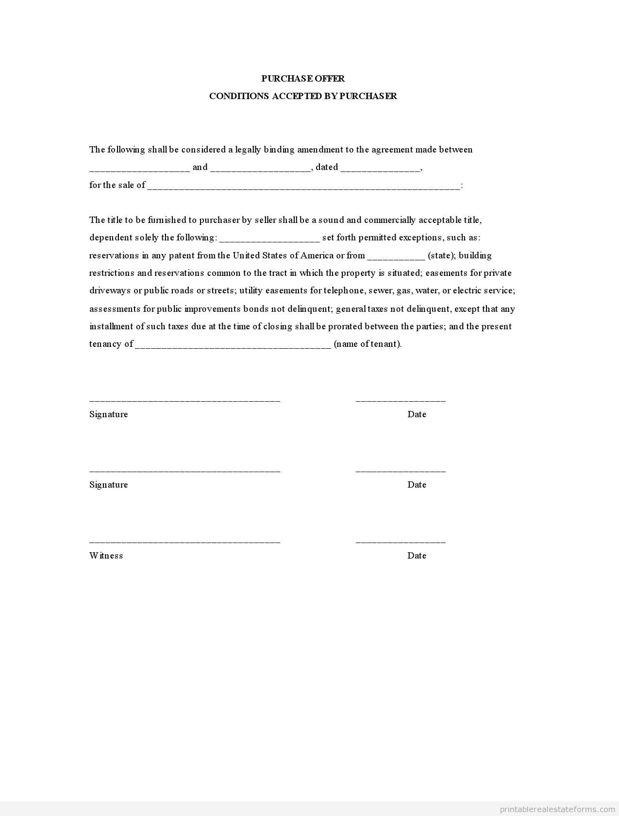 Where to download PURCHASE OFFER CONDITIONS ACCEPTED BY PURCHASER Template?
