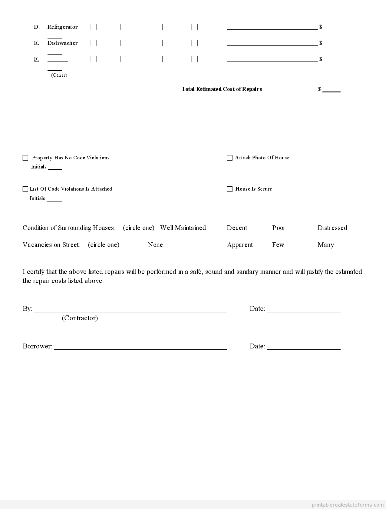 I certify that the above listed repairs will be performed in a safe, sound and sanitary manner and will justify the estimated the repair costs listed above.